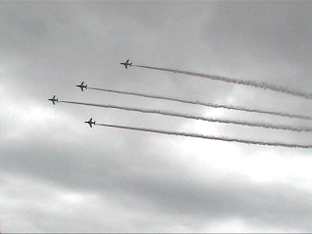 編隊飛行もこの距離です。なんと機体同士の間は1m。時速数百キロで飛びつつの芸当。
